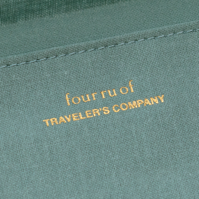 フラップの内側にさりげなく「fourruof」×「TRAVELER’S FACTORY」のロゴを箔押ししました。