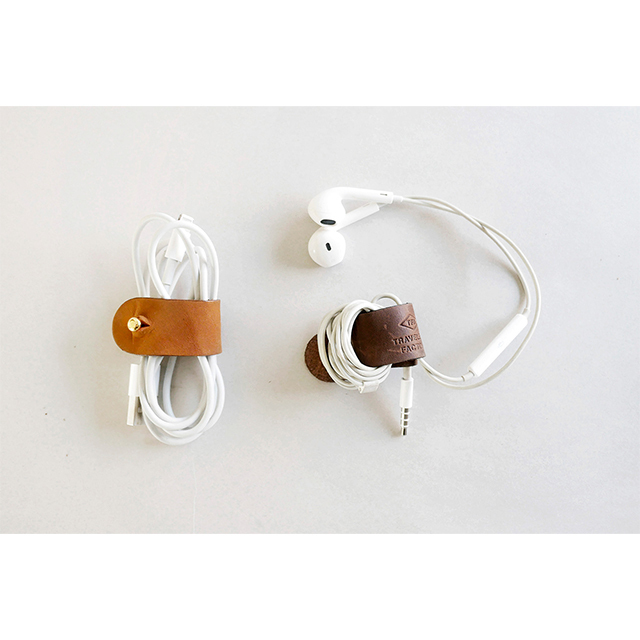イヤフォンから充電用のケーブルまで長く絡まりやすいケーブルを気持ちよくまとめてくれます。ネジ式のギボシパーツを一度外してケーブルを通して取り付ければ、ケーブルと一体化するのがポイントです。革も真鍮も使うほどに味わい深く変化していきます。