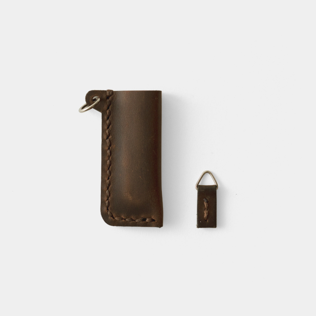 そんなクラシックSDをより快適に持ち歩くために専用のレザーケースを作りました。リングが付いているので、キーホルダーやバッグに取り付けやすく、クラシックSD本体のリングに付属の革タグを取り付ければ、使いたいときにさっと取り出せます。トラベラーズノート茶の革を使っているので、使う程に味のある色に変わっていくのも魅力です。ペンケースやポーチに入れて持ち歩くのもおすすめです。