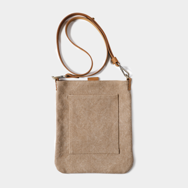風合いのあるキャンバスとトラベラーズノート キャメルの革を使ってタイ・チェンマイで作ったトラベラーズファクトリー オリジナルのキャンバスショルダーバッグ。