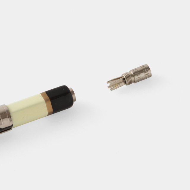 芯ホルダーは、鉛筆のような優しい書き心地と、シャープペンのように簡単に芯を繰り出す便利さを両立させた、知る人ぞ知る昔ながらの定番筆記具です。ノックすると芯が出てくるので、紙の上や指先で好みの長さに調節して使います。書きやすい太目の芯はメモ書きからスケッチにもおすすめです。