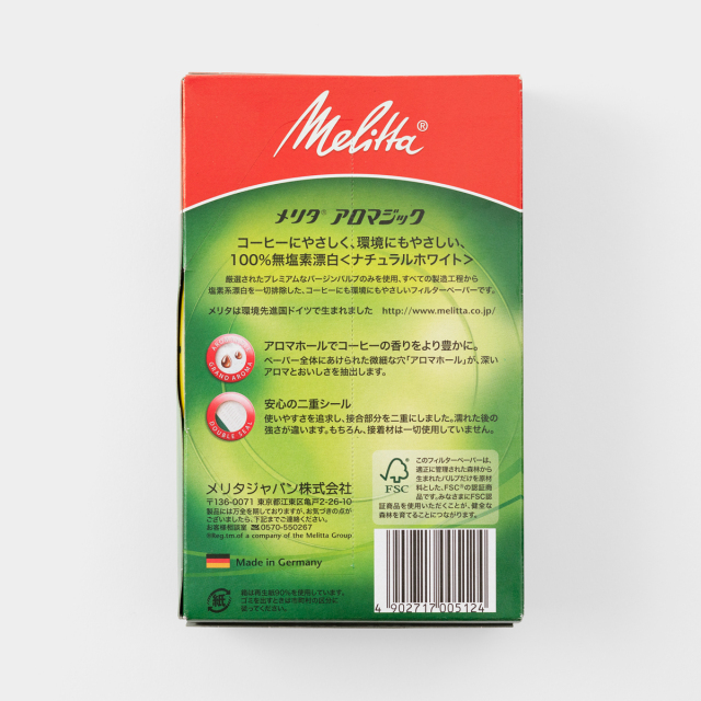 Melitta コーヒードリッパー(2~4杯)用のペーパーフィルターです。バージンパルプのみを使用し、FSC認証取得の環境にやさしいフィルターペーパーです。