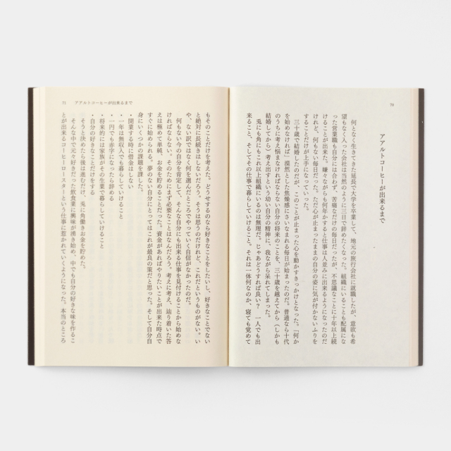 アアルトコーヒーの庄野さんが2010年に発表した名著に50編の書き下ろしエッセイを加え、文庫サイズの新装版で復刊しました。「コーヒーって興味はあるけど難しそう」と思っている皆様に、庄野さんが簡単に、楽しくコーヒーの魅力を伝えます。堀井和子さんとの美味しく誰でもできる超簡単なハンドドリップ講座、長谷川ちえさんとのお店を続けていくための対談も掲載。ささやかだけれど、とっても役に立つ、コーヒーがもっとずっと楽しくなる本です。