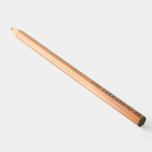 大正6年創業の東京銀座の老舗画材店、月光荘オリジナルの8B鉛筆です。画材メーカーとしてはじまった月光荘ならではのなめらかな書き心地が特徴です。8Bなので芯そのものが柔らかく、軽く描けば薄く、筆圧をかければ濃くなり、筆圧や削り方で自由自在に描き分けられるのも魅力です。ぜひ一度8Bの書き心地をお試しください。