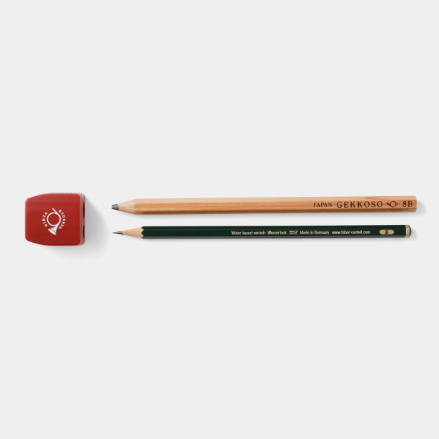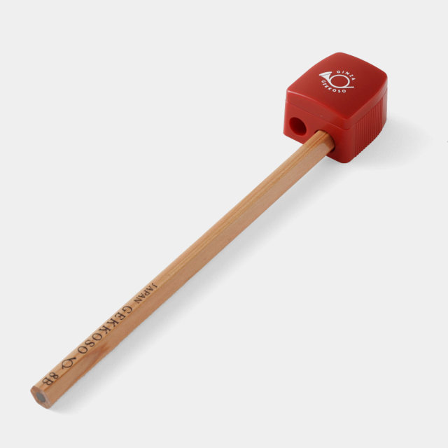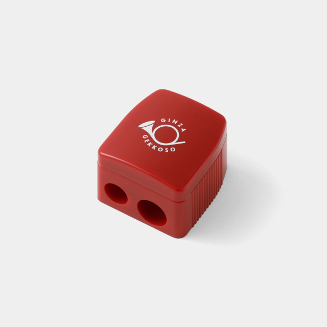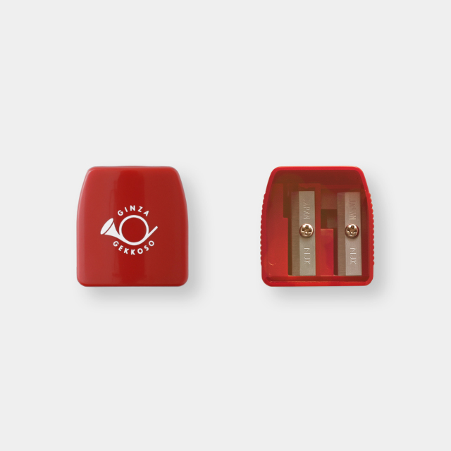 大正6年創業の東京銀座の老舗画材店、月光荘のオリジナル鉛筆削りです。月光荘8B鉛筆などの太めの鉛筆用と、通常の鉛筆用と2種類の削り穴がついています。削りカスが落ちてこないケース型の鉛筆削りです。