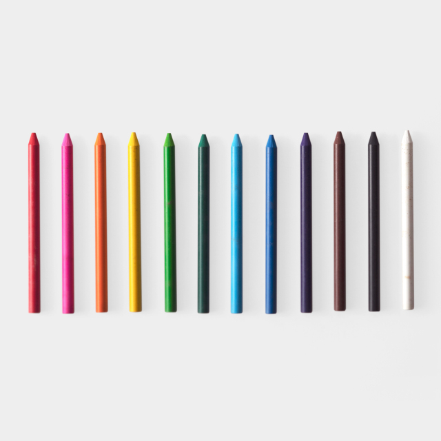 大正6年創業の東京銀座の老舗画材店、月光荘のオリジナル色鉛筆(12色入)です。顔料とロウから出来た芯だけ全体が芯になっている色鉛筆です。はっとするような鮮やかな発色が特徴です。鮮やかなのですが、下地も見えるので、マーカーのように使うこともできます。丸い紙管のケース入りなので、ノートと一緒に持ち歩くのも便利です。