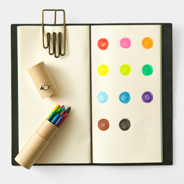 12色の色鉛筆が持ち歩きやすい紙管にセットされています。