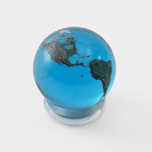 アメリカ・カリフォルニア発のブランド、SHASTA VISIONSによるクリスタルグラスの地球です。純度の高いクリスタルガラスで作られた球体に、正確な地球の地理がプリントされています。光にかざすと美しい地球のシルエットが写ります。手のひらの上の大陸や島、湖、氷河、砂漠、熱帯雨林、山脈などを探してみてください。台座の上に置くと、地球儀のように回転します。小さな地球儀として机の上に置けば、世界を感じられます。