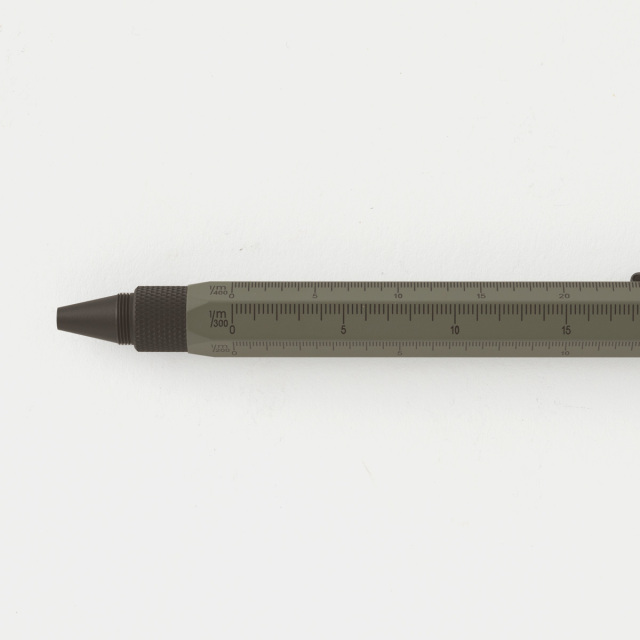 機能:スタイラス(スマホやタブレットを操作)、ドライバー(プラスとマイナス)、スケール(100分の1、200分の1、300分の1、400分の1)、水平器、ボールペン