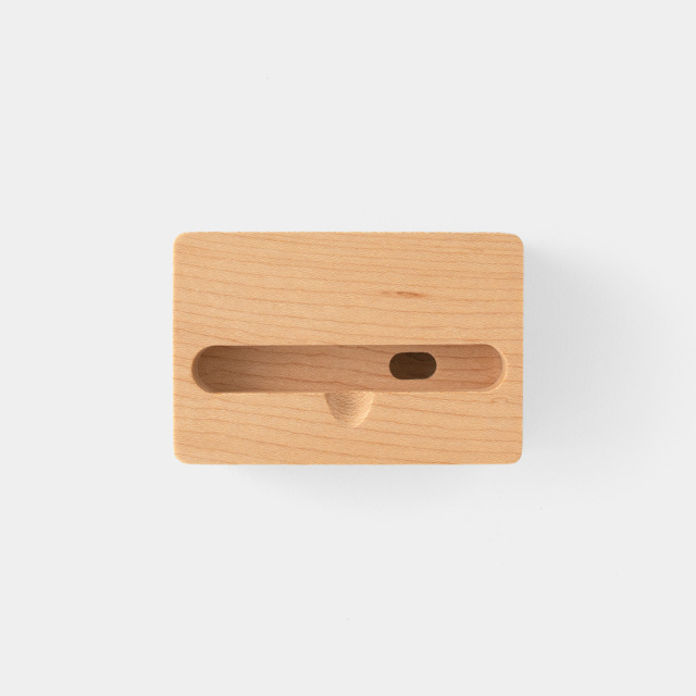 「アクースティコ iPhoneスピーカー」は、電源を一切使用しない、iPhone用の木製スピーカーです。iPhoneをドックに差し込むだけで、法螺貝の仕組みにならってデザインされた内部の空洞に音が反響し、森の中にいるようなアコースティックな音を奏でてくれます。福島県会津の木工所で丁寧に作られた木工品としての美しい佇まいも魅力です。