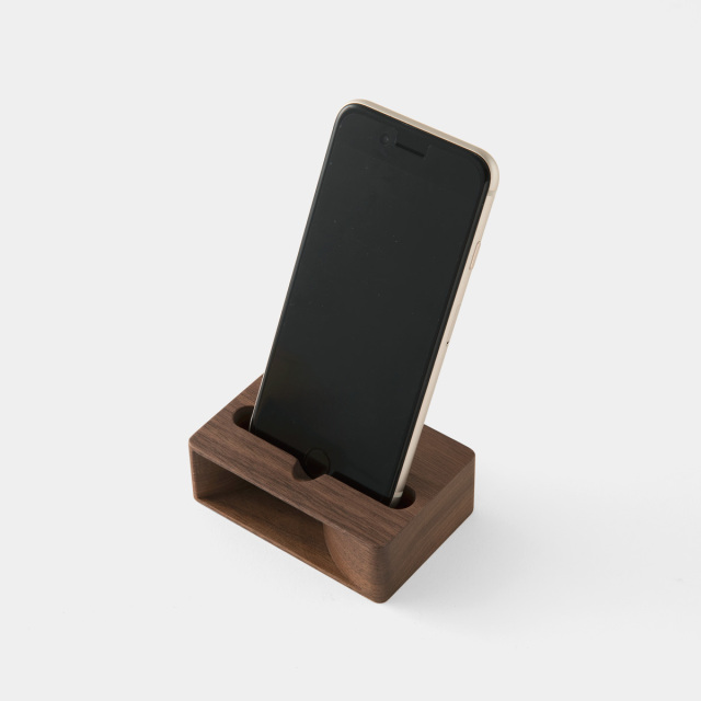 「アクースティコ iPhoneスピーカー」は、電源を一切使用しない、iPhone用の木製スピーカーです。iPhoneをドックに差し込むだけで、法螺貝の仕組みにならってデザインされた内部の空洞に音が反響し、森の中にいるようなアコースティックな音を奏でてくれます。福島県会津の木工所で丁寧に作られた木工品としての美しい佇まいも魅力です。
