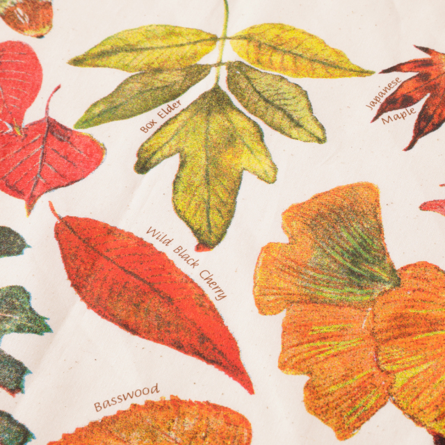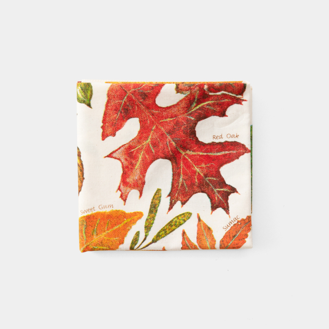 サンフランシスコの北、Chicoを拠点にするプリント・イメージ社のバンダナです。こちらは秋のさまざまな種類の落ち葉をデザイン。アウトドアを歩く際にプリントにある落ち葉を探してみるのも一興です。