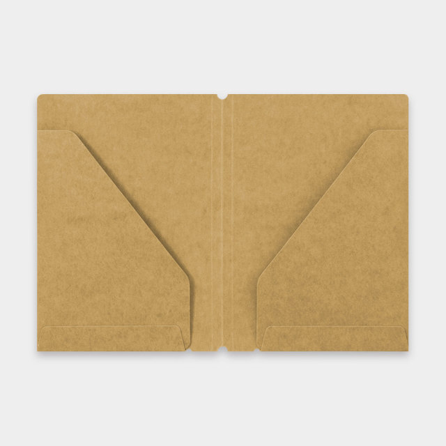ノートリフィルの外側に一緒に挟み込んだり、連結バンドでセットしてご使用ください。風合いがあって丈夫な含浸紙を使用しているので、トラベラーズノートの革との相性もバッチリ。旅先で手に入れたショップカードやチケット、名刺などざくざく収納してください。