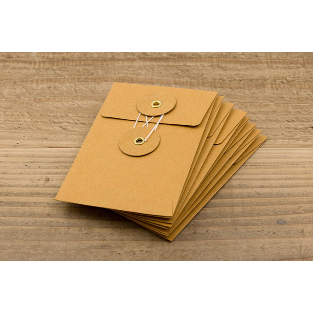 紐をくるくる巻きつけて留めるちょっとしたひと手間が、送るときの想いを深め、開けるときの高揚感をもたらしてくれます。開け閉めが何度もできるので、旅先で手に入れた紙モノの保存にもおすすめ。<S>サイズはショップカードや名刺が入ります。ぽち袋のようにお金や一言のメッセージを手渡しするのに使ったり、レシートや切手など紙モノの整理にも便利。また、ノートの表紙に貼れば、簡単にポケット付きノートができあがります。トラベラーズノートパスポートサイズにぴったりです。