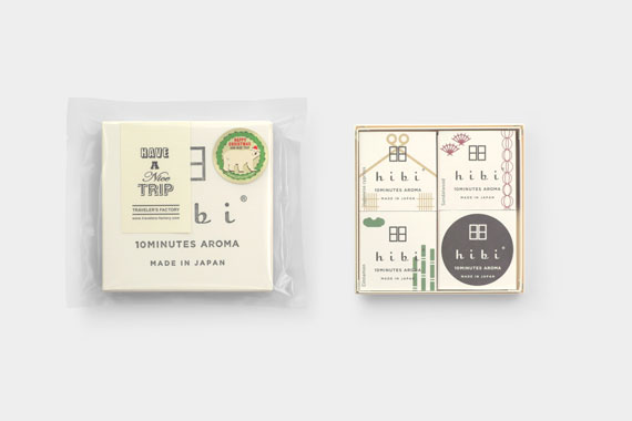 「hibi 和の香り3種 ギフトボックス」は、マッチ型のお香(ヒノキ、白檀、シナモン)が3箱と、専用のマットが付属しています。マッチのように擦って火をつけると、10分間心地よい香りが広がり、手軽にリフレッシュできるアイテムです。