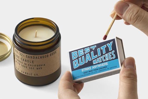 P.F. Candle Co. ソイワックスキャンドルは、アメリカ産植物性由来のソイワックスを原料に、カルフォルニアの工房で作られたメイドインUSAのフレグランスキャンドルです。ガラスビンからラベル、箱まですべて再生素材を使用し作られたシンプルなデザインのパッケージも魅力です。 香りはもちろん、火をともす瞬間から心地よい時間を味わってほしいとアメリカの映画で出てきそうなマッチをセットしました。