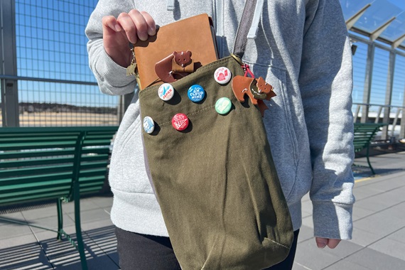 中目黒店スタッフ「外側やハンドルはモノトーンの色にすることで、お気に入りのバッジやブローチが映えます。意外とたくさん入るので、お仕事中にも大活躍です。」