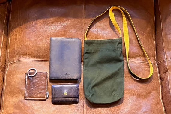 中目黒店スタッフ「定番の短いハンドルのトロールも、使う色は敢えて白と黒の2色に絞っています。柄物の服を選ぶことが多いので、自分の服装に合わせやすいように工夫しています。レギュラーサイズのトラベラーズノートを入れてます。」
