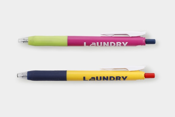 ランドリーペンはクリーニングタグメーカーがクリーニング店向けに作った専用のペンで、管理番号や汚れ位置、洗濯時の注意事項などをタグに書き込むために使われています。