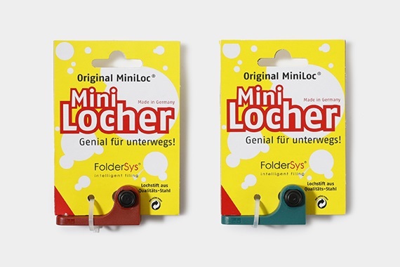 ペンケースにも入るコンパクトで持ち運びしやすい2穴パンチです。書類を2つ折りにして折り目をストッパーに合わせて、黒いキャップを押し込むと2穴加工ができます。ドイツのブランドならではのシンプルで機能的なデザインも魅力です。