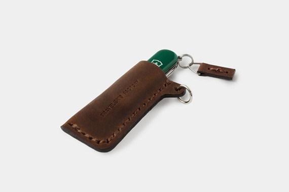 クラシックSDがぴったり収納できる、トラベラーズノートの革を使用したレザーケースもご用意しています。リングが付いているので、キーホルダーやバッグに取り付けやすく、クラシックSD本体のリングに付属の革タグを取り付ければ、使いたいときにさっと取り出せます。