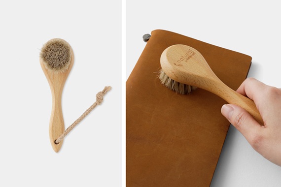 こちらは、「ヒルブラシ」による革製品用のブラシです。少量のオイルをなじませるように塗り、ブラシで磨くことでトラベラーズノートの革にツヤがでてきます。もちろん、トラベラーズノート以外の革製品にもお使いいただけます。